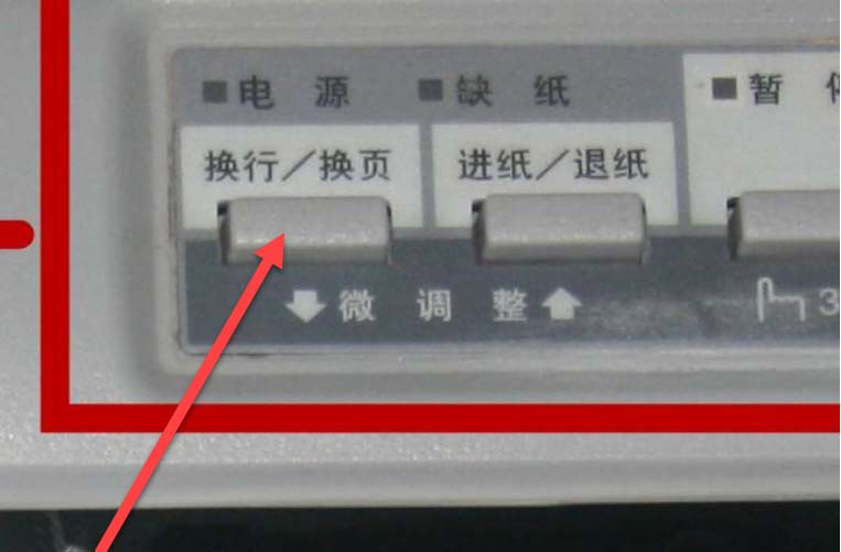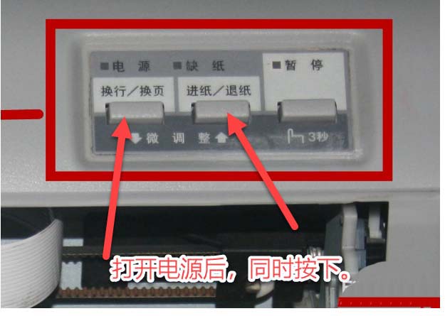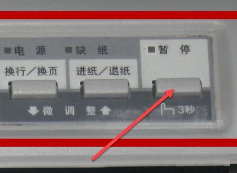 4、按三下進紙鍵,電源燈熄滅,缺紙燈長亮,暫停燈長亮。(如果按了三下,指示燈狀態(tài)不對,就繼續(xù)按)