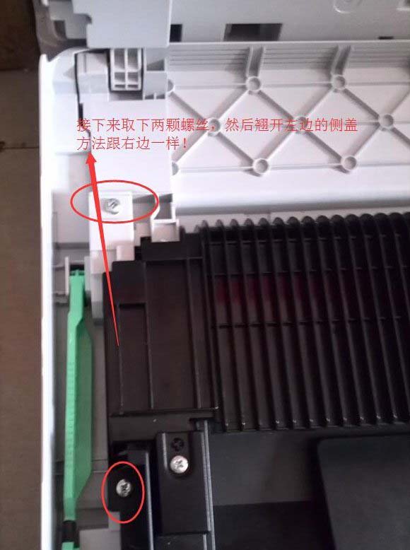 接下來取下兩顆螺絲,然后撬開左邊的側蓋,方法跟右邊的要樣