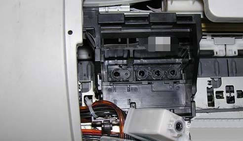 5、噴嘴部分會甩出一些墨水,用餐巾紙將墨盒噴嘴處甩出的墨水吸干,將清洗后的墨盒安裝回去,墨盒清潔過程就完成了;