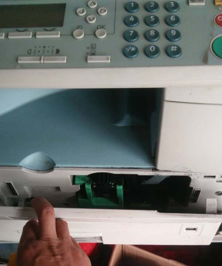 3、開始折定影組件了,先拉開復印機正面面板。