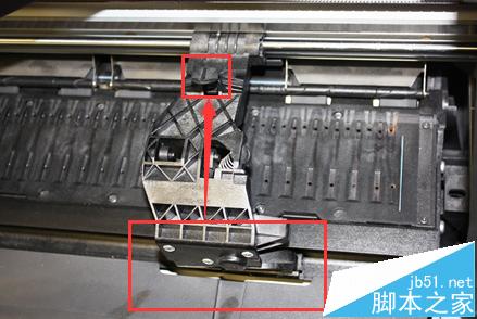 1、關機,打開機器上蓋,順著不銹鋼的導軌向最左側找,將裁紙刀拖出來