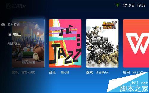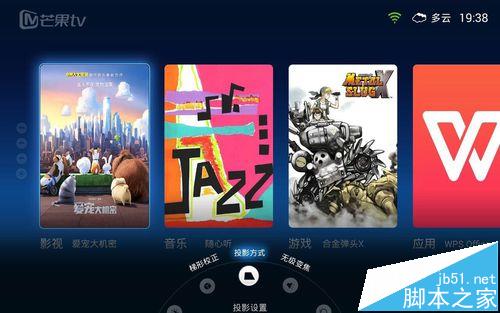 3、開機(jī)第一件事情就是先調(diào)整好屏幕投放設(shè)置,當(dāng)投影儀放置傾斜時(shí)我們就需要對(duì)投影儀進(jìn)行投放設(shè)置,對(duì)被投放畫面進(jìn)行校正。按下遙控器中框選的按鈕來設(shè)置投影方式,選擇“投影設(shè)置”來選擇投影方式,打開“投影校正”,選擇自動(dòng)校正即可。