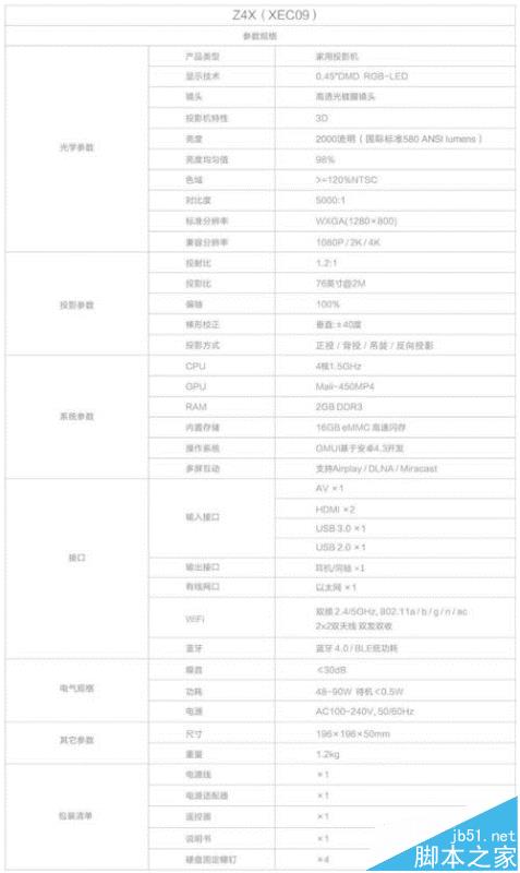 具體的可以看下面的參數(shù)圖(極米官方參數(shù)):