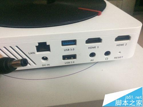 1、接下來我們來使用體驗(yàn),將電源線插入投影儀后面的DC IN接口,連接上電源適配器連上電源即可開機(jī)了。