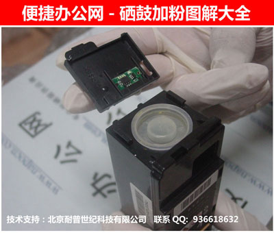第七步:把粉盒上的計數芯片取下來,換上新的計數芯片,如圖示: