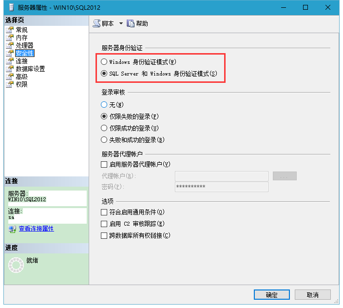 當你安裝SQL Server時,你可以選擇SQL實例允許的驗證模式。安裝完成后你可以在SSMS里的服務器屬性對話框里修改這個設置。這些設置適用于SQL Server實例里的所有數據庫和其它對象。因此如果你需要為任何數據庫使用SQL Server身份驗證,你需要為服務器設置為混合模式。
