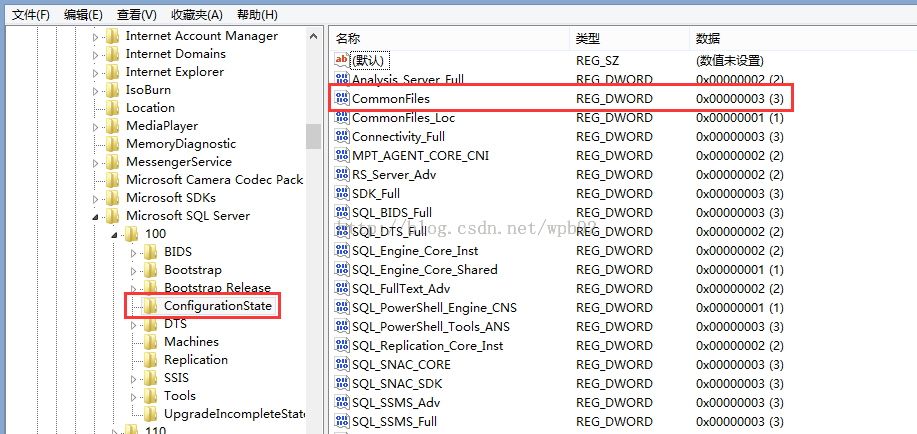 HKEY_LOCAL_MACHINE/SOFTWARE/Microsoft/Microsoft SQL Server/100/ConfigurationState里的CommonFiles值改成3