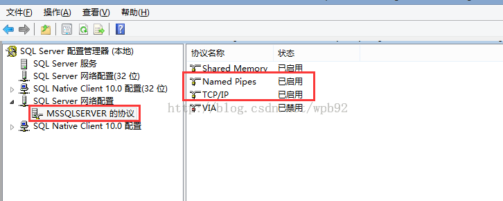 查看MSSQLSERVER的協議中的Named Pipes和TCP/IP這兩項的狀態是否為啟用,如果不是則要手動啟用