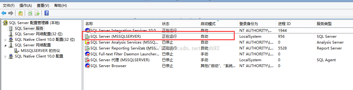 抱著不成功便重裝的心思我按照提示卸了起來。令人興奮的是卸載之后,還真的成功了。這時再檢查SQL server(MSSQLSERVER)是否啟動,如果沒有仍舊需要手動啟動。