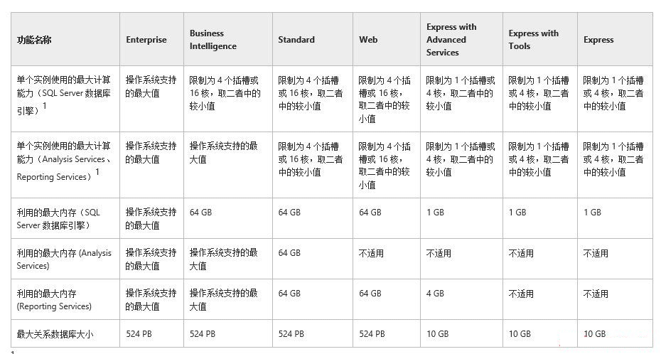 轉換箱規模限制 高可用性 (AlwaysOn) 可伸縮性和性能 安全性 復制 管理工具 RDBMS 可管理性 開發工具 可編程性 Integration Services Integration Services - 高級適配器 Integration Services - 高級轉換 Master Data Services 數據倉庫 Analysis Services BI 語義模型(多維) BI 語義模型(表格) PowerPivot for SharePoint 數據挖掘 Reporting Services Business Intelligence 客戶端 空間和位置服務 其他數據庫服務 其他組件