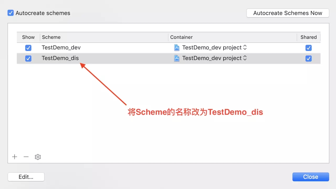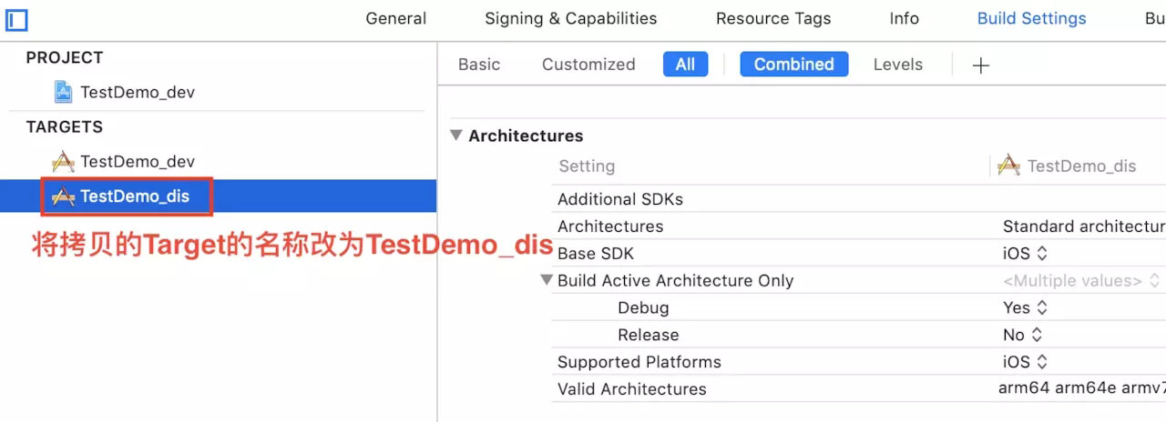 拷貝結束之后, 將拷貝的Target的名稱改為“TestDemo_dis”