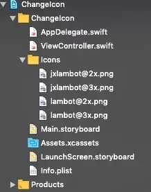 這里我們就將 info.plist 編輯完成了,下面我們將對應的圖片加入到項目中,這里的圖片需要直接加到項目中,不能放在 Assets.xcassets 中。