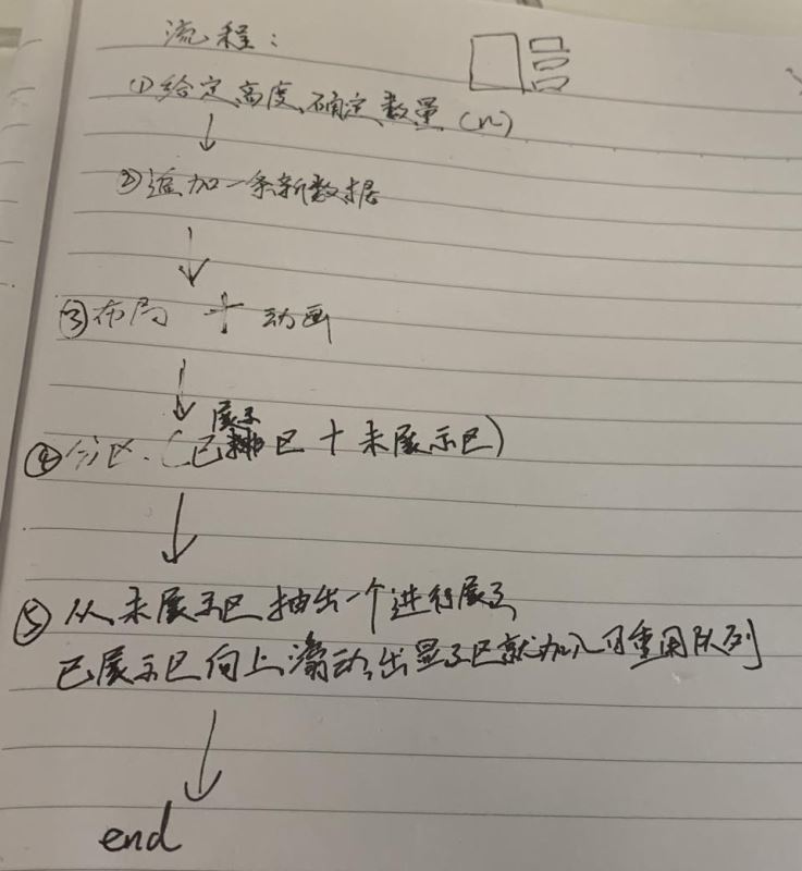 追加一條新數據(由于需要動畫處理, 當前數據動畫完成后才能處理下一條數據,這里需要定義兩個區:正在處理區和等待處理區)