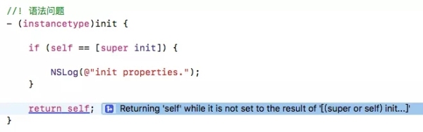在重寫類的init方法時,有時會手誤寫出語法問題,這時可以使用Analyze檢測出問題。圖示如下: