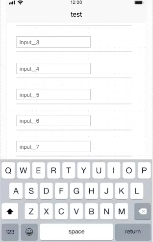 我們先來分析一下這個需求,首先,這個表單是一個列表list(UITableView或者UICollectionView),如圖1所示,當用戶點擊輸入框1、2、3、4、5的時候,彈出鍵盤但不會被遮擋,這種情況,不用做處理,當用戶點擊輸入框6、7、8,彈出鍵盤會遮擋輸入框,想要讓輸入框顯示出來,我們有兩個辦法,第一可以向上修改整個列表view的frame的y值,第二可以修改列表的contentoffset的y值,都可以達到效果,下邊我們選擇第二種方式來實現我們的需求。