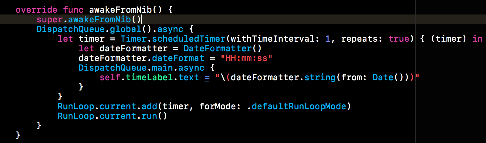 首先我們按照常規做法,直接在UITableView的Cell上添加相應的NSTimer, 并使用scheduledTimer執行相應的代碼塊。這種方式沒有什么特殊的就是對Timer的直接使用。下方是我們本部分的Timer的使用代碼,當然是使用Swift來實現的,不過與OC的代碼差不多。代碼如下所示 :