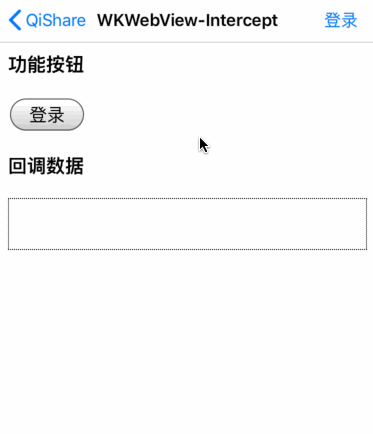 實現邏輯:點擊iOS的登錄按鈕,iOS將登錄成功后的token數據傳遞給JS,JS將收到的數據展示出來。