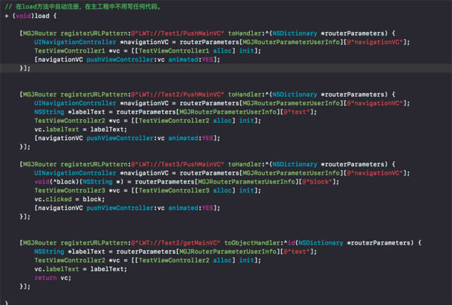 使用一個(gè)類來統(tǒng)一管理注冊(cè)的方法,再load方法中進(jìn)行注冊(cè),就不會(huì)到處看到注冊(cè)的代碼,方便管理。