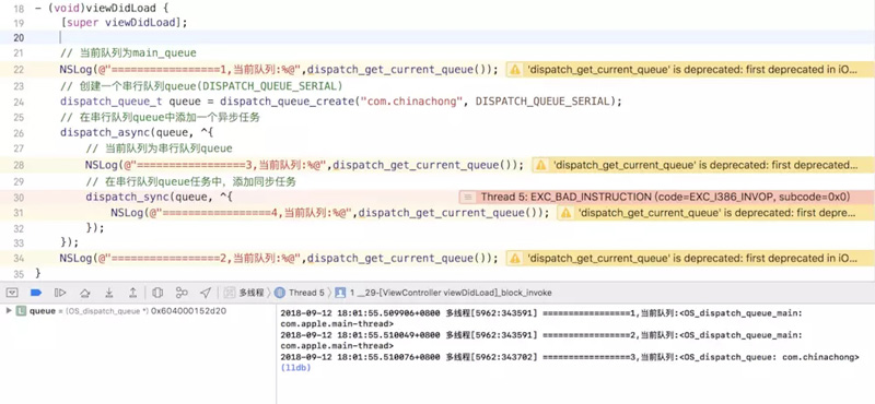 - (void)viewDidLoad { [super viewDidLoad]; dispatch_sync(dispatch_get_main_queue(), ^{ NSLog(@"線程死鎖"); });}