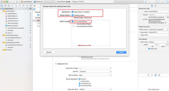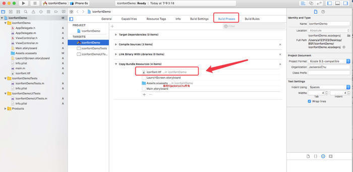 我們所需要的就是這個iconfont.ttf,對于這個ttf文件,我想我們并不陌生吧。新建項目,將這個ttf文件拖入自己的項目里。