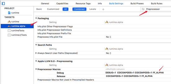 這可以通過,預編譯宏來區分,比如在 runtime alpha