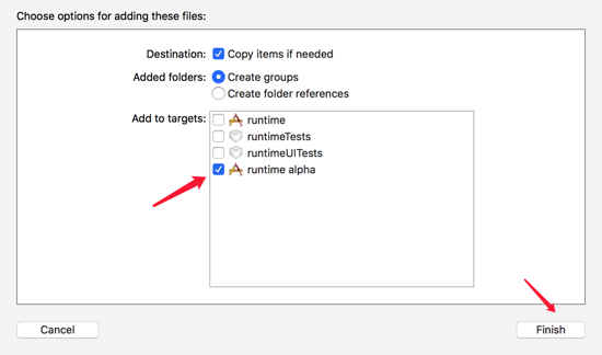 文件的同級目錄,然后重新添加到項目中,注意選擇的 target