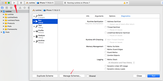 運行按鈕(左上方),然后點擊 Manage Schemes