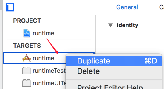 每個Target代表一個編譯的產品。每個Target,可以有不同的編譯源文件和資源文件。那么,實現環境分離的方案,就是分別建立測試環境和生產環境的兩個Target。默認的Target作為生產環境的Target,在此基礎上復制多一個Target作為測試環境的Target。