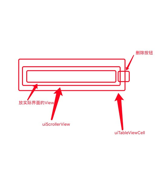 scrollview 中放入一個uiview 和scrollview寬高相等 作為內(nèi)容視圖 。界面的所有控件視圖都添加到這個uiview中!!! 右邊就是自定義的刪除按鈕 也添加到scrollview中。這樣就能實現(xiàn)滑動效果了。(你也可以加2個按鈕,3個按鈕,隨你開心)