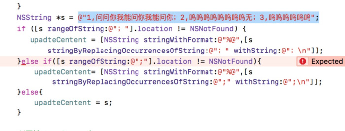 剛才想法是字符串 拼接@“/n”,當初走了一下彎路,因為是封裝一下alert,所以我就在字符串傳個alert的時候 在alert里面去處理這個字符串,后來發現不可以,出現把@“/n”,拼接上去,nslog打印出來是換行的,但是重已放到alert上還是原來的那樣,,后來發現手動給字符串添加@“/n”到字符串@“你好 你好/n你好”就可以分行,我剛才那樣寫隨打印的時候分行了但字符串里沒有拼接到@“/n”,所以alert還是原來那個樣子,所以后來我想從原來開始處理這個字符串,直接拿到后臺返回的字符串,然后直接把/n拼接上去,普通的拼接不行還是原來那樣,@“//n”, /n是拼接上去了但/n沒起到換行的作用,就是簡單字符拼接到字符串中了,