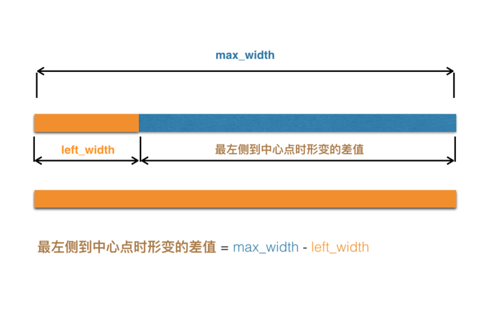 由于形變是雙向的、右側和左側都會變長。那么對于左側最終將是中間時最終形變差值的一半。
