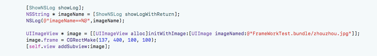 我們再里面簡單的添加了一個ShowNSlog的類,并且我們添加了一個 FrameWorkTest.boundle文件,看看我們在這個類里面寫了什么內(nèi)容: