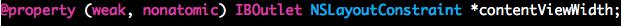 想要改變視圖的寬度來實現(xiàn)動畫效果,將這條約束拖到ViewController成為屬性