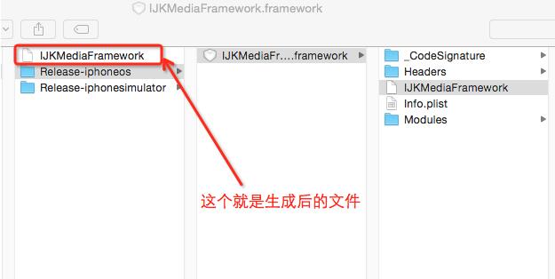 第四步:將生成的IJKMediaFramework文件替換掉真機(jī)framework中的IJKMediaFramework文件,然后這個(gè)替換掉文件的真機(jī)framework就是我們需要的通用的framework了。