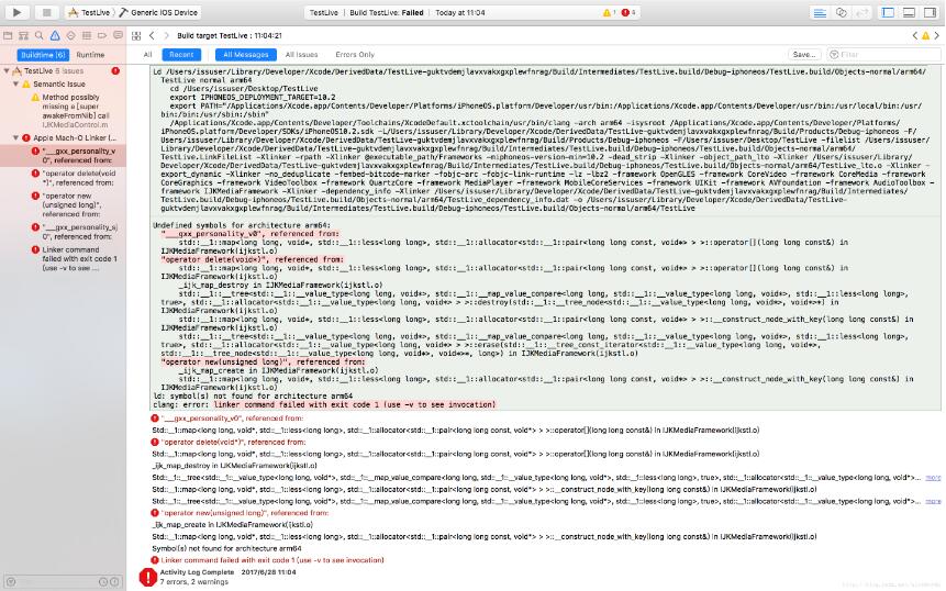 第五步:測(cè)試IJKMediaFramework.framework是否正確,將IJKMediaFramework.framework導(dǎo)入新工程,并引入依賴庫,然后引入頭文件#import <IJKMediaFramework/IJKMediaFramework.h>如果沒有報(bào)錯(cuò),那么可以證明我們的編譯IJKMediaFramework.framework是沒有問題的。
