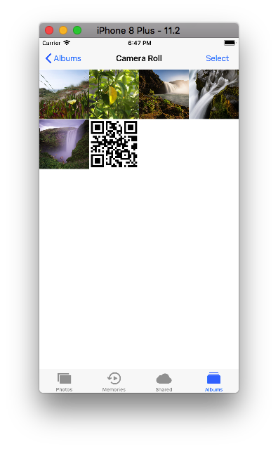問題修復(fù)完成!再次運(yùn)行,點(diǎn)擊保存按鈕,打開相冊(cè)應(yīng)用,你會(huì)看到剛才保存的二維碼: