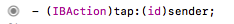 打開 Main.storyboard 文件,從對(duì)象庫中找到點(diǎn)擊手勢(shì)(Tap Gesture Recognizer),將其添加到視圖控制器的Image View上,完成之后會(huì)在控制器的頂部看到它: