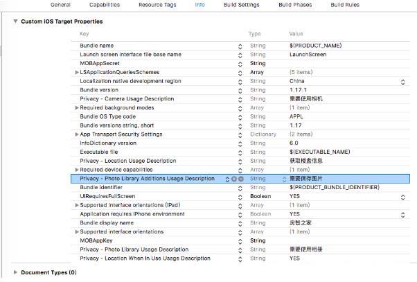 如果你不愿思考而習慣性百度的話,會發現有很多類似的問題。不過它們基本都是缺少“NSPhotoLibraryUsageDescription”,而這里卻是缺少“NSPhotoLibraryAddUsageDescription”。