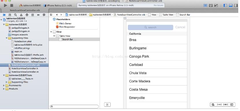 #import <UIKit/UIKit.h>@interface NoteScanViewController : UIViewController <UITableViewDataSource,UITableViewDelegate,UISearchBarDelegate>@property (nonatomic,retain)NSMutableDictionary *words;@property (nonatomic,retain)NSMutableArray *keys;@property (weak, nonatomic) IBOutlet UITableView *table;@property (weak, nonatomic) IBOutlet UISearchBar *search;@property (nonatomic,retain)NSDictionary *allWords;- (void)resetSearch;- (void)handleSearchForTerm:(NSString *)searchTerm;@end