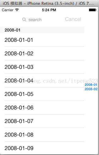 #import "NoteScanViewController.h"#import "NSDictionary+MutableDeepCopy.h"@interface NoteScanViewController ()@end@implementation NoteScanViewController- (id)initWithNibName:(NSString *)nibNameOrNil bundle:(NSBundle *)nibBundleOrNil{ self = [super initWithNibName:nibNameOrNil bundle:nibBundleOrNil]; if (self) { // Custom initialization } return self;}- (void)viewDidLoad //只在第一次加載視圖調用{ [super viewDidLoad]; /*加載plist文件*/ NSString *wordsPath = [[NSBundle mainBundle]pathForResource:@"NoteSection" ofType:@"plist"];//得到屬性列表的路徑 NSDictionary *dictionary = [[NSDictionary alloc]initWithContentsOfFile:wordsPath]; self.allWords = dictionary; [self resetSearch]; //加載并填充words可變字典和keys數組 _search.autocapitalizationType = UITextAutocapitalizationTypeNone;//不自動大寫 _search.autocorrectionType = UITextAutocorrectionTypeNo;//不自動糾錯}//取消搜索或者改變搜索條件- (void)resetSearch{ self.words = [self.allWords mutableDeepCopy]; //得到所有字典的副本 得到一個字典 NSLog(@"所有字典 = %@",self.words); NSMutableArray *keyArray = [[NSMutableArray alloc]init];//創建一個可變數組 [keyArray addObjectsFromArray:[[self.allWords allKeys]sortedArrayUsingSelector:@selector(compare:)]]; //用指定的selector對array的元素進行排序 self.keys = keyArray; //將所有key 存到一個數組里面 NSLog(@"所有key = %@",self.keys);}//實現搜索方法- (void)handleSearchForTerm:(NSString *)searchTerm{ NSMutableArray *sectionsRemove = [[NSMutableArray alloc]init]; //創建一個數組存放我們所找到的空分區 [self resetSearch]; for(NSString *key in self.keys)//遍歷所有的key { NSMutableArray *array = [_words valueForKey:key] ; //得到當前鍵key的名稱 數組 NSMutableArray *toRemove = [[NSMutableArray alloc]init];//需要從words中刪除的值 數組 for(NSString *word in array) //實現搜索 { if([word rangeOfString:searchTerm options:NSCaseInsensitiveSearch].location == NSNotFound)//搜索時忽略大小寫 把沒有搜到的值 放到要刪除的對象數組中去 [toRemove addObject:word]; //把沒有搜到的內容放到 toRemove中去 } if([array count] == [toRemove count])//校對要刪除的名稱數組長度和名稱數組長度是否相等 [sectionsRemove addObject:key]; //相等 則整個分區組為空 [array removeObjectsInArray:toRemove]; //否則 刪除數組中所有與數組toRemove包含相同的元素 } [self.keys removeObjectsInArray:sectionsRemove];// 刪除整個key 也就是刪除空分區,釋放用來存儲分區的數組,并重新加載table 這樣就實現了搜索 [_table reloadData];}- (void)viewWillAppear:(BOOL)animated //當使用Push或者prenset方式調用{}//#pragma mark -- (NSInteger)numberOfSectionsInTableView:(UITableView *)tableView{ return ([_keys count] >0)?[_keys count]:1; //搜索時可能會刪除所有分區 則要保證要有一個分區}- (NSInteger)tableView:(UITableView *)tableView numberOfRowsInSection:(NSInteger)section{ if([_keys count] == 0) { return 0; } NSString *key = [_keys objectAtIndex:section]; //得到第幾組的key NSArray *wordSection = [_words objectForKey:key]; //得到這個key里面所有的元素 return [wordSection count]; //返回元素的個數}- (UITableViewCell *)tableView:(UITableView *)tableView cellForRowAtIndexPath:(NSIndexPath *)indexPath{ NSUInteger section = [indexPath section]; //得到第幾組 NSUInteger row = [indexPath row]; //得到第幾行 NSString *key = [_keys objectAtIndex:section]; //得到第幾組的key NSArray *wordSection = [_words objectForKey:key]; //得到這個key里面的所有元素 static NSString *NoteSectionIdentifier = @"NoteSectionIdentifier"; UITableViewCell *cell =[tableView dequeueReusableCellWithIdentifier:NoteSectionIdentifier]; if(cell == nil) { cell = [[UITableViewCell alloc]initWithStyle:UITableViewCellStyleDefault reuseIdentifier:NoteSectionIdentifier]; } cell.textLabel.text = [wordSection objectAtIndex:row]; return cell;}//為每個分區指定一個標題- (NSString *)tableView:(UITableView *)tableView titleForHeaderInSection:(NSInteger)section{ if([_keys count] == 0) return @" "; NSString *key = [_keys objectAtIndex:section]; return key;}//創建一個索引表- (NSArray *)sectionIndexTitlesForTableView:(UITableView *)tableView{ return _keys;}#pragma mark - - (NSIndexPath *)tableView:(UITableView *)tableView willSelectRowAtIndexPath:(NSIndexPath *)indexPath{ [_search resignFirstResponder]; //點擊任意 cell都會取消鍵盤 return indexPath;}#pragma mark-- (void)searchBarSearchButtonClicked:(UISearchBar *)searchBar //搜索button點擊事件{ NSString *searchTerm = [searchBar text]; [self handleSearchForTerm:searchTerm]; //搜索內容 刪除words里面的空分區和不匹配內容}- (void)searchBar:(UISearchBar *)searchBar textDidChange:(NSString *)searchText{ //搜索內容隨著輸入及時地顯示出來 if([searchText length] == 0) { [self resetSearch]; [_table reloadData]; return; } else [self handleSearchForTerm:searchText];}- (void)searchBarCancelButtonClicked:(UISearchBar *)searchBar //點擊取消按鈕{ _search.text = @""; //標題 為空 [self resetSearch]; //重新 加載分類數據 [_table reloadData]; [searchBar resignFirstResponder]; //退出鍵盤}@end