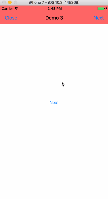 viewWillAppear()中獨立設置當前控制器的樣式固然是最容易想到也是最好實現的方式,這種方式不僅支持默然的push、pop,同樣支持手勢返回操作,但是缺點也很明顯,那就是手勢操作時切換效果很突兀。demo1演示了這個效果: