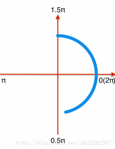后半段: 從π到1.5π,這一段運動速度較慢;StartAngle開始變化,從-0.5π變化到1.5π;EndAngle從π變化到1.5π,最后StartAngle和EndAngle重合于1.5π;后半段中圓弧不斷變長,最后直至消失。