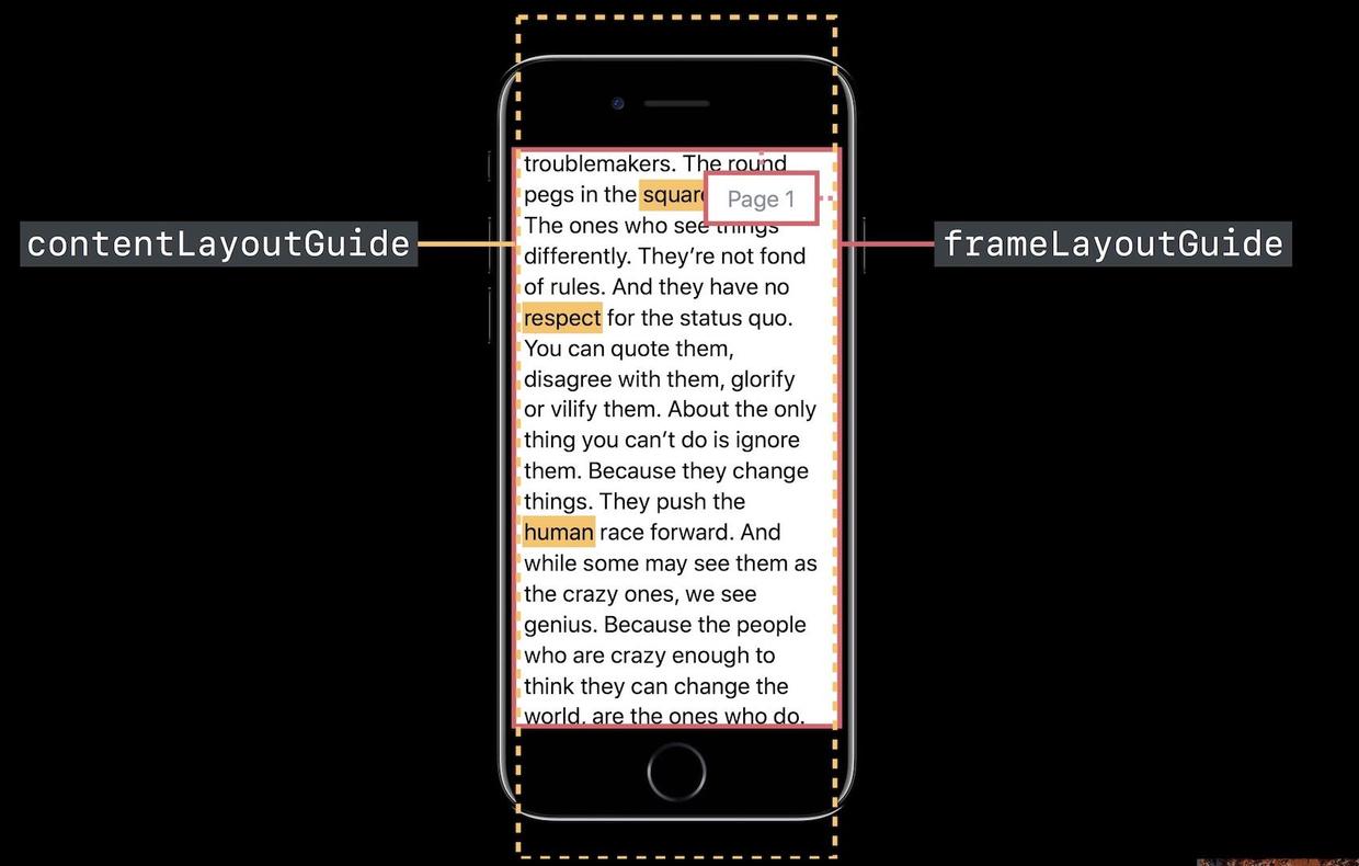 UIScrollView 新增 frameLayoutGuide 和 contentLayoutGuide, 目的是為了降低 ScrollView Auto Layout 的難度