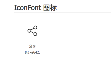 其中的圖標名稱下面的一個字符串就是我們需要的編碼,只是我們需要將其進行轉換,如果是Objective-C,我們需要將其轉為/U0000e642,如果是swift,我們需要將其轉為/u{e642},每個圖標的編碼不一樣,但是對應關系是一樣的,每個iconfont文件中可能不止一個圖標,使用的時候就根據圖標編碼轉成對應的即可使用;