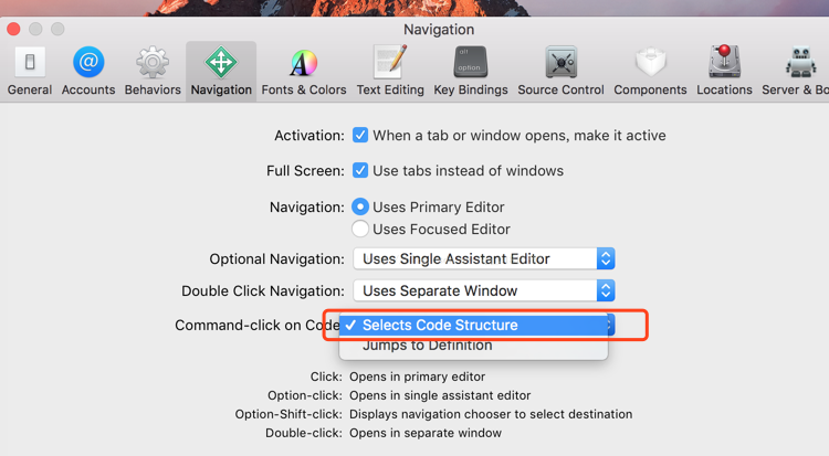 以上所述是小編給大家介紹的iOS11 Xcode 9 按住command 單擊 恢復(fù)到從前(直接跳轉(zhuǎn)到定義),希望對(duì)大家有所幫助,如果大家有任何疑問(wèn)請(qǐng)給我留言,小編會(huì)及時(shí)回復(fù)大家的。在此也非常感謝大家對(duì)武林網(wǎng)網(wǎng)站的支持!