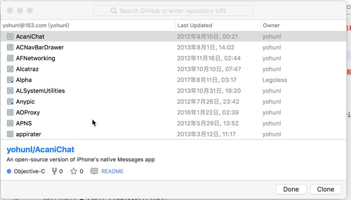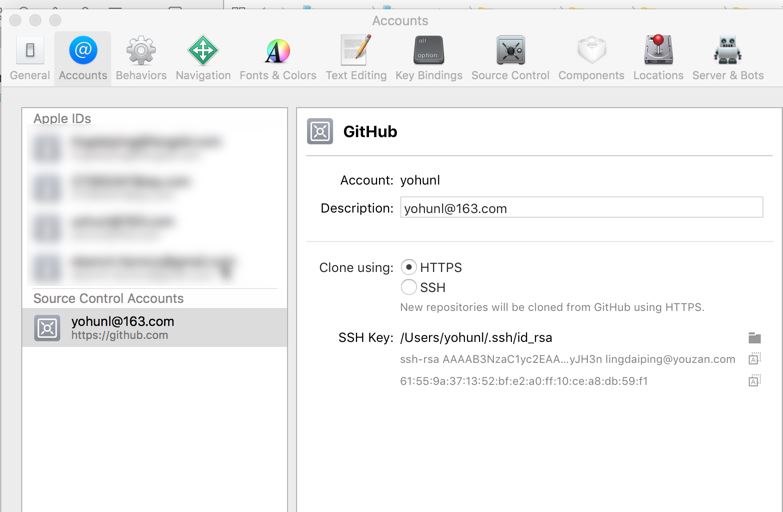 XCode - Preferences -Accouts 可以登錄你的GitHub賬戶,登錄后如下