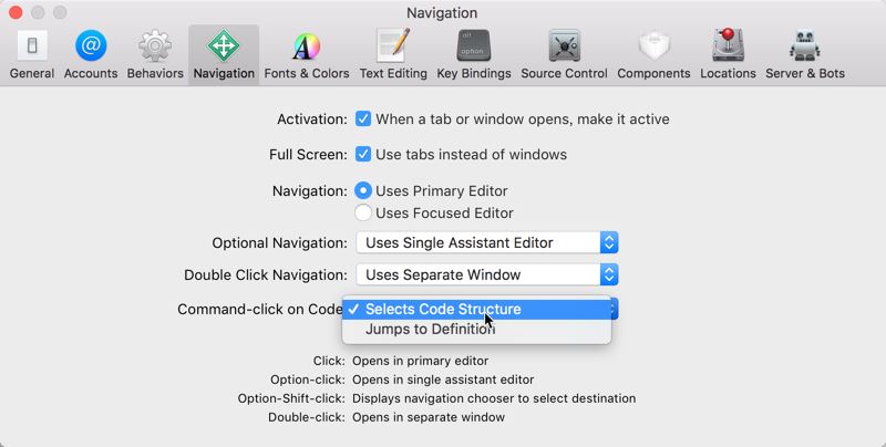 當(dāng)然,如果你還是覺得以前的cmd+單擊 跳轉(zhuǎn)到變量定義,你更習(xí)慣,可以在