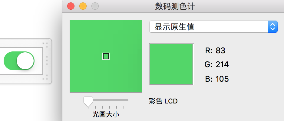 系統自帶的測色工具,位置在 應用程序 -> 實用工具( Launchpad 里叫其他) -> 數碼測色計