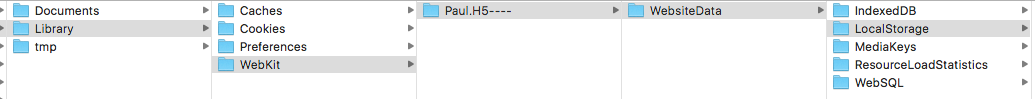- (void)removeWebCache{ if ([[UIDevice currentDevice].systemVersion floatValue] >= 9.0) { NSSet *websiteDataTypes= [NSSet setWithArray:@[ WKWebsiteDataTypeDiskCache, //WKWebsiteDataTypeOfflineWebApplication WKWebsiteDataTypeMemoryCache, //WKWebsiteDataTypeLocal WKWebsiteDataTypeCookies, //WKWebsiteDataTypeSessionStorage, //WKWebsiteDataTypeIndexedDBDatabases, //WKWebsiteDataTypeWebSQLDatabases ]]; // All kinds of data //NSSet *websiteDataTypes = [WKWebsiteDataStore allWebsiteDataTypes]; NSDate *dateFrom = [NSDate dateWithTimeIntervalSince1970:0]; [[WKWebsiteDataStore defaultDataStore] removeDataOfTypes:websiteDataTypes modifiedSince:dateFrom completionHandler:^{ }]; [[NSURLCache sharedURLCache] removeAllCachedResponses]; } else { //先刪除cookie NSHTTPCookie *cookie; NSHTTPCookieStorage *storage = [NSHTTPCookieStorage sharedHTTPCookieStorage]; for (cookie in [storage cookies]) { [storage deleteCookie:cookie]; } NSString *libraryDir = [NSSearchPathForDirectoriesInDomains(NSLibraryDirectory, NSUserDomainMask, YES) objectAtIndex:0]; NSString *bundleId = [[[NSBundle mainBundle] infoDictionary] objectForKey:@"CFBundleIdentifier"]; NSString *webkitFolderInLib = [NSString stringWithFormat:@"%@/WebKit",libraryDir]; NSString *webKitFolderInCaches = [NSString stringWithFormat:@"%@/Caches/%@/WebKit",libraryDir,bundleId]; NSString *webKitFolderInCachesfs = [NSString stringWithFormat:@"%@/Caches/%@/fsCachedData",libraryDir,bundleId]; NSError *error; /* iOS8.0 WebView Cache的存放路徑 */ [[NSFileManager defaultManager] removeItemAtPath:webKitFolderInCaches error:&error]; [[NSFileManager defaultManager] removeItemAtPath:webkitFolderInLib error:nil]; /* iOS7.0 WebView Cache的存放路徑 */ [[NSFileManager defaultManager] removeItemAtPath:webKitFolderInCachesfs error:&error]; NSString *cookiesFolderPath = [libraryDir stringByAppendingString:@"/Cookies"]; [[NSFileManager defaultManager] removeItemAtPath:cookiesFolderPath error:&error]; [[NSURLCache sharedURLCache] removeAllCachedResponses]; }}