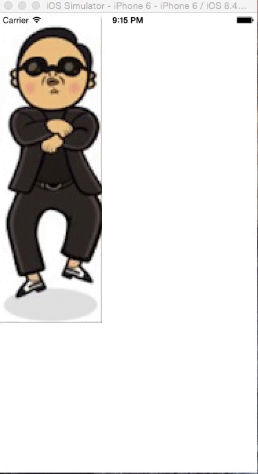 self.imageView = [[UIImageView alloc] initWithImage:[UIImage imageNamed:@"test.jpg"]];[self.view addSubview:self.imageView];self.imageView.frame = CGRectMake(0, 0, 150, 450);self.imageView.animationImages = @[[UIImage imageNamed:@"f-0.jpg"],[UIImage imageNamed:@"f-1.jpg"],[UIImage imageNamed:@"f-2.jpg"],[UIImage imageNamed:@"f-3.jpg"],[UIImage imageNamed:@"f-4.jpg"],[UIImage imageNamed:@"f-5.jpg"],[UIImage imageNamed:@"f-6.jpg"],[UIImage imageNamed:@"f-7.jpg"],[UIImage imageNamed:@"f-8.jpg"],[UIImage imageNamed:@"f-9.jpg"],[UIImage imageNamed:@"f-10.jpg"],[UIImage imageNamed:@"f-11.jpg"],[UIImage imageNamed:@"f-12.jpg"],[UIImage imageNamed:@"f-13.jpg"],[UIImage imageNamed:@"f-14.jpg"],[UIImage imageNamed:@"f-15.jpg"],];self.imageView.animationDuration = 5.0;self.imageView.animationRepeatCount = 0;[self.imageView startAnimating];